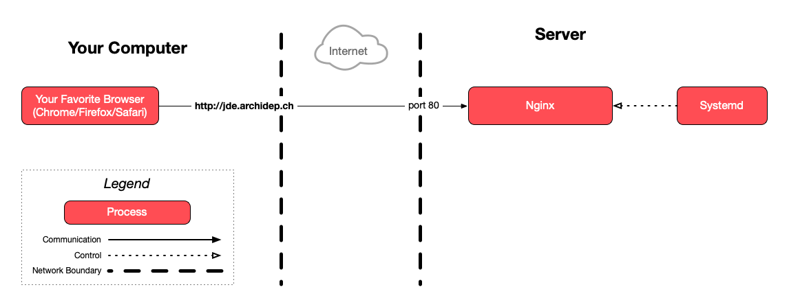 Note that this diagram only shows the processes involved in this exercise, ignoring the PHP Todolist we have also deployed on the server.